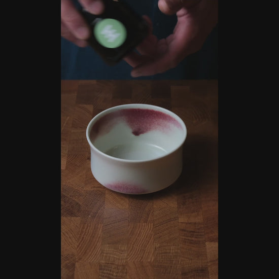 Hand-made ceramic by Goji Studios with artful glazes inspired by nature's orchids and created by chemistry's kiln process. Like the delicate flower, expect minor variations in colour, size, and shape as each object is unique. Ritualize your matcha and fill your cup in more ways than one.